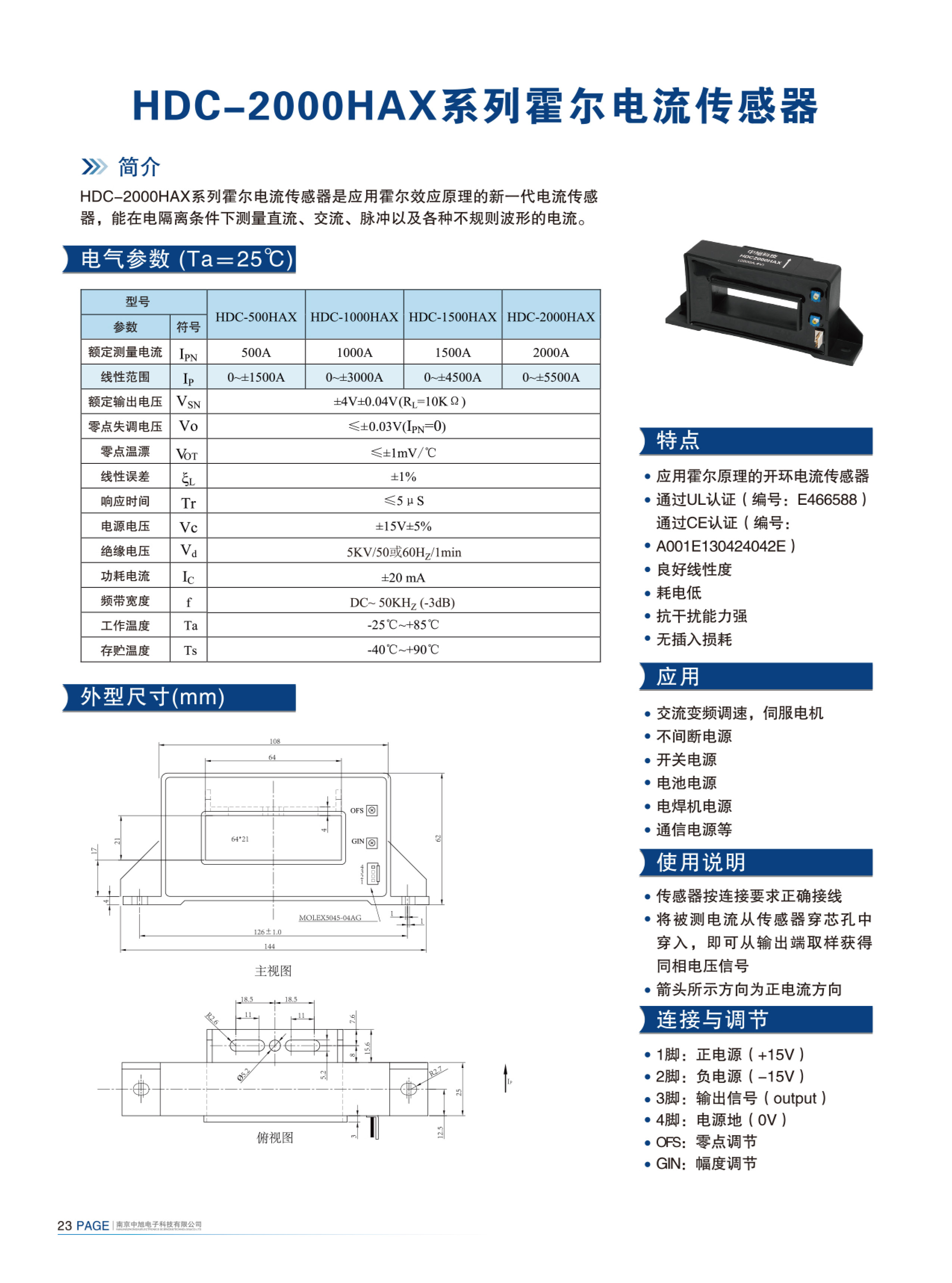 HDC-2000HAX系列霍爾電流傳感器是應用霍爾效應原理的新一代電流傳感器,能在電隔離條件下測量直流、交流、脈沖以及各種不規則波形的電流。