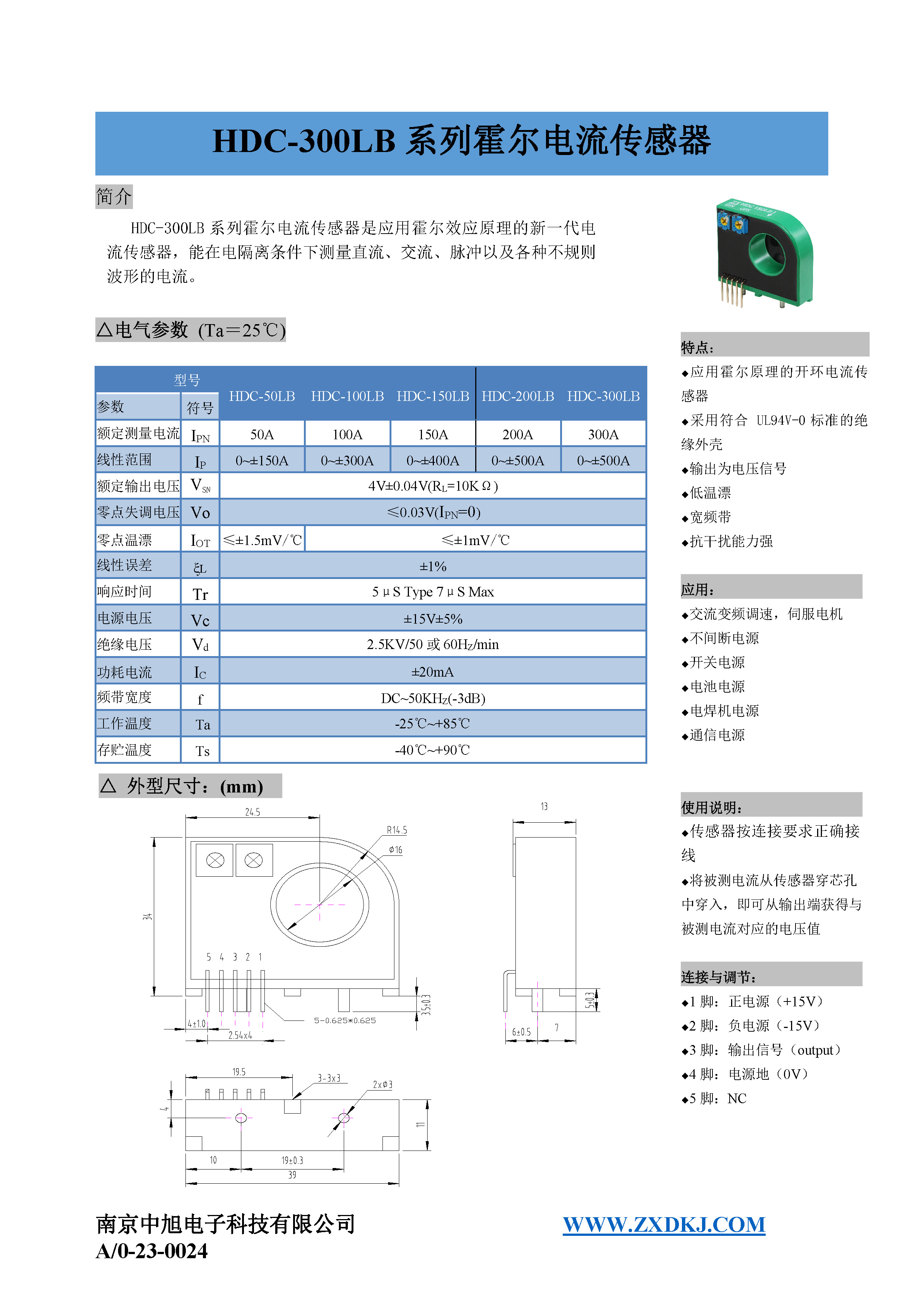 HDC-150LB系列霍爾電流傳感器是應用霍爾效應原理的新一代電流傳感器,能在電隔離條件下測量直流、交流、脈沖以及各種不規則波形的電流。